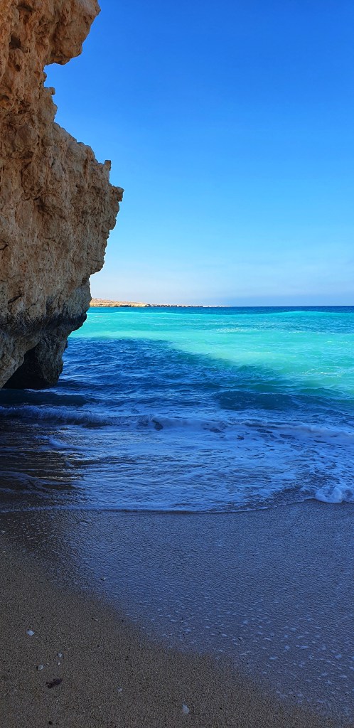 Al salir del Wadi Al-Shab y antes de volver a Sur, en esta ocasión en taxi, decidimos pasar unas horas en la playa de Tiwi. Una playa prácticamente virgen donde el baño en las aguas del Mar Arábigo es una parada obligada.