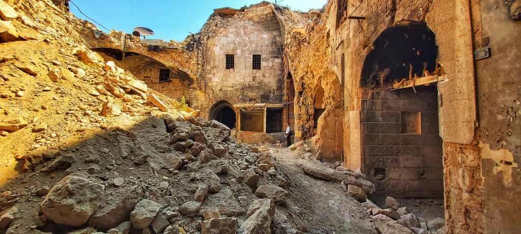 Actualmente, algunas partes del zoco siguen estando muy afectadas a consecuencia del terremoto que aconteció en Siria en febrero de 2023.