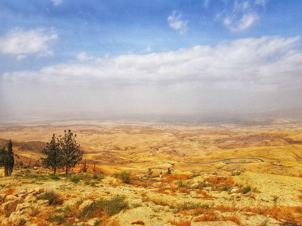 El Monte Nebo tiene vistas de la cuenca más próxima al Mar Muerto y de Palestina, incluso en los días claros se pueden ver ciudades como Jericó.