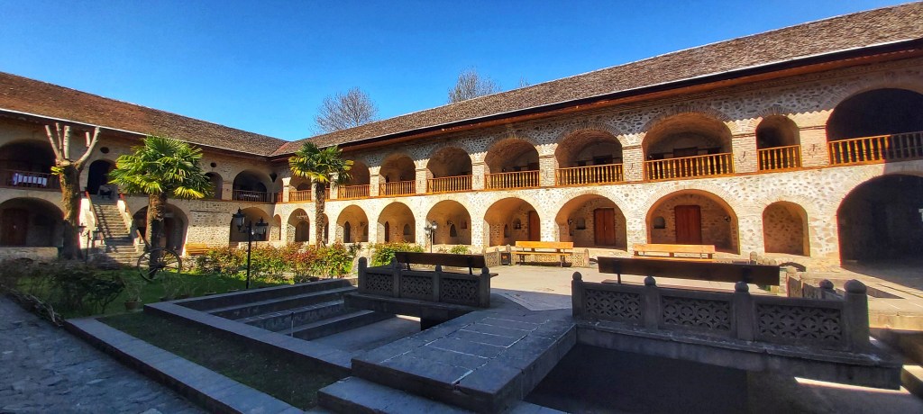 El Caravasar de Shaki es un antiguo hospedaje de comerciantes de la Ruta de la Seda, ahora convertido en hotel. Un lugar abierto al público, digno de visitar y fotografiar.