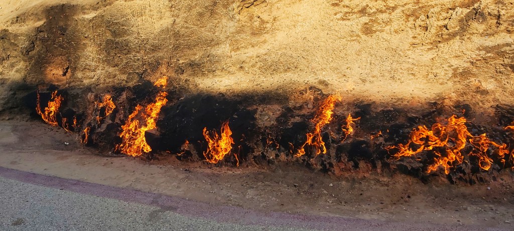 Yanar Dag es una de las maravillas naturales más impresionantes de Azerbaiyán. Su nombre significa «Montaña Ardiente» en azerí, y es famosa por sus llamas eternas que emergen del suelo.